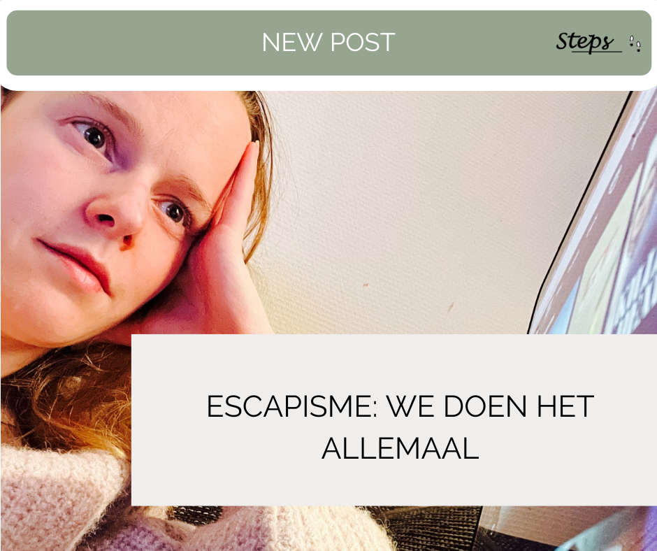 Want ja, ik hang nu toch echt te lang op de bank een favoriete serie te ‘binge-watchen’ en stel stiekem dingen uit waarvan jij en ik weten dat ze allang gedaan hadden moeten worden. Waarom heb ik die dingen eigenlijk nog niet gedaan? Ik weet het wel: saai, niet leuk, ligt me niet echt, ik ben moe; er zijn duizenden andere dingen die ook nog moeten gebeuren, om maar een paar voorbeelden te noemen. Escapisme is hiervan het gevolg. ️
